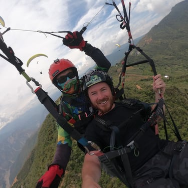 The second main activity there, is Paragliding in Chicamocha. Again I booked this through the hostel, got picked up in a minivan and drove around an hour, mainly uphill to a large clifftop. We got a safety briefing, strapped into our harness with our pilot behind us, and got told to run off the side of the cliff, to not jump just keeping running, and well yes that was absolutely terrifying. When you were airborne it was spectacular, really cool sensation, until my pilot started doing doughnuts, and I had to grab the sick bag, which for the next 15 minutes I was violently sick into! They did warn us before which I of course laughed off, who was laughing now I guess, but supposedly it is quite common and I saw a few other pale faces. The main reason is that they actually use thermals to push the kite back up, so you have to go round in circles going up this thermal to gain enough height and then to land where you took off.
