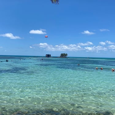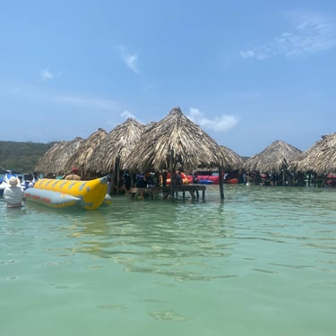 Cholon Island - the opposite to Rosario in terms of this is the party island! I took this tour and it was so much fun, you stop off at a small island first to snorkel, and then you go to Cholon where there are around 15 other boats, and you all have this table that is set into the sandbank. It's about waist high, depending how tall you are, you have lunch here, obviously a lot of drinks, and there are guys coming round offering you banana boat rides, jetskis etc. and the music is of course pumping all day.