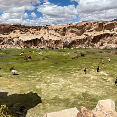 Day 2 - was a lot of driving through the desert, coming across unique rock formations, a super cool oasis where Llamas lived full of watering holes and grass, and a few incredible viewpoints into the canyons below. We stopped in a tiny town called Villa Martin where we had a cold beer, a local quinoa beer which was interesting. That night you stay at the Salt Hotel (I'll let you guess what it was made out of) and we had a great big family type meal here with another 6 or 7 groups.