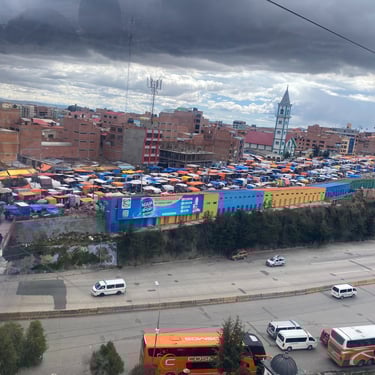 The second full day was exploring the city of La Paz, it's very unique as it's built into the mountains mean all the road are very undulating, probably why they built the cable car system, The Telefrico! It also has its social rank where the more expensive homes are at the bottom of the roads in town, and the further up the roads you go, the landscape starts to change to some very worn-down places. The main stop for the day was the 16 de Julio Market which is a few miles long, and you can get pretty much everything here, but we went for some super tasty street food. The other stop was Plaza Murillo, which is right in the centre and connects most of the political buildings in the city.