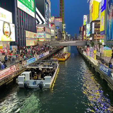 Dotonbori - This is the main tourist hotspot in Osaka, it has the main shopping streets, lots of restaurants, bars and of course has the river running through it which is great to walk along, people watch, watch the boats go down and soak up all the lights at night.