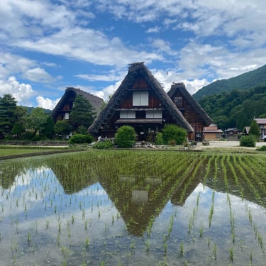 Shirakawa-Go - Is a day trip from Takayama, it is a world-heritage listed site and you can see why. It's like something out of a movie, the spectacular huts in these green fields, with streams running through them, temples scattered around and again the backdrop of the mountains.