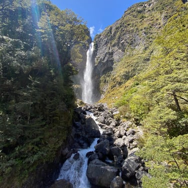 Devils Punchbowl is a 131 meter high waterfall that is actually on Arthur's pass which is cool to check out and only 5 minutes off the main road.