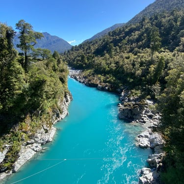 Hokitika Gorge is kind of on the way, but you detour inland for around 45 minutes, but it's so worth it as again the drive is spectacular, and the gorge is a 10 minute walk where you walk to a bridge to look over the bluest water you've ever seen.