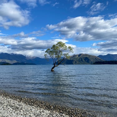 I personally love Wanaka, it's an hour up the road from Queenstown, is a smaller town with half the amount of people, has a lovely lake with many different areas to sit, sunbath, throw a kayak in and it has the famous tree (picture to the right).