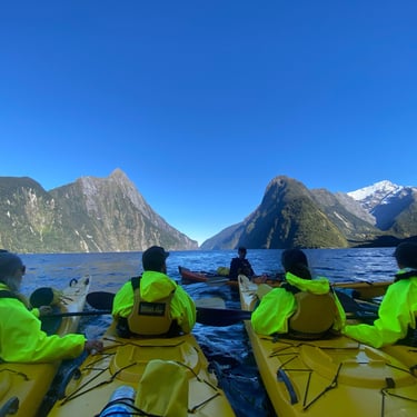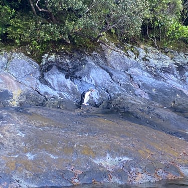 I pulled up at the kayaking spot, where we were put into boats of 2, I was with a cool german chap similar age also traveling the world. I was so pleased to choose this method of exploring the sound, as we ventured out, hugged the left coastline and as we were down at the water level, the sound look huge! We then made our way across the lake, which was actually pretty choppy even though we had a good weather window, they did say sometimes they've needed to be picked up by a boat due to the swell. We took in the scenes, managed to get up close to some penguins, checked out a waterfall and then headed back after about two hours on the water.