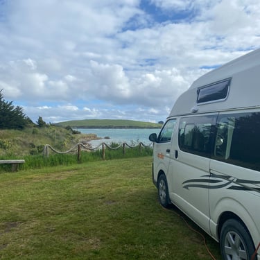Catlins Newhaven Holiday Park - was where I stayed for one of the nights, and this campsite was super cute, very small but right on the shoreline, where I took a walk in the morning along the sea and saw massive sea lion.