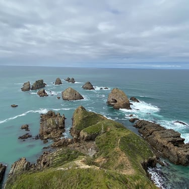 Nugget Point - is a unique rock formation, where there are many small and large rocks sticking out of the ocean that yes, look like nuggets, and there is a famous lighthouse overlooking them as back in the day it was prone for shipwrecks.