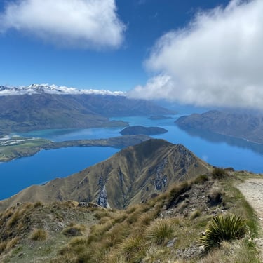 One of my favourite hikes I did in New Zealand, it's 20 minutes from Wanaka along the lake, and is 16km with an elevation gain close to 4,000 feet, so it's a tough one. It's pretty much all uphill, with switchbacks up the mountain always with a view of the lake, and I did it early in the morning so the peak was actually covered with fog, but by the time I got up there it had just cleared which added an extra coolness to it.