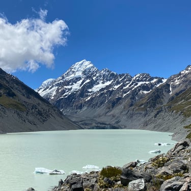 There is another hike I did, which is a flat 8km there and back, to the lake where you get the best viewpoint of Mount Cook, this trail was a lot busier but if you go to the right, and climb over some rocks you can get away from the crowds and taking in a great view of Mount Cook.