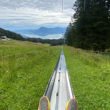 I took the cable car half way up the mountain, to ride Switzerlands longest toboggan run. It was pretty spectacular riding it down with the view infront of you, even though depending on how fast you went you had to keep looking at the track, as you don't want to take a corner too fast. You then get dragged back up, where you can sit, relax and take in the view of the mountain and lake below.