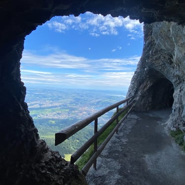 Standing at 5,686 feet, I had to go and check this out, so I got off the boat and took another cogwheel train up. This time it wasn't the steepest int he world, but the first operating cogwheel train in Europe. After taking in the view, I decided to get some steps in and went for a 8km hike, along the ridge of the mountain and down slightly to the cable car, which took around 2 hours.