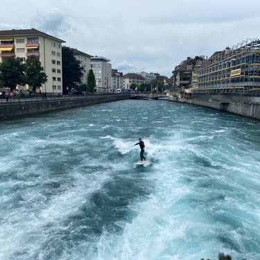One of the most popular things to do in the town itself, is watch the wakeboarders use the natural current of the water flowing under the bridges. It's effectively a naturally created wave that you can keep riding if you get in the right position, and once they fall they have to dash to the side so they don't float down the river and have a huge walk back up to the spot.