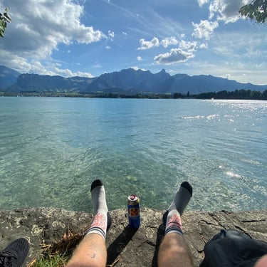 The other is to walk alongside, or cycle round some of Lake Thunersee. I rented a bike, and cycled around 10km down the lake, where I simply relaxed with a cold drink drink, listening to some music and taking in the scenes. Many people were either swimming in the lake, taking their sailboat out or kite surfing.