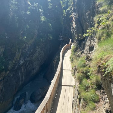 This is another mountain village only accessible by cable car or railway. I took the cable car up from Lauterbrunnen, and then the train across to Murren which is pretty spectacular that high up and on the edge of the mountain. I only went up here for the day, to hike the Northface Trail which is 8km but with 800 feet of elevation gain. It's a trail that has so much variety, you walk through peoples chalets, farms, cross a couple bridges over rivers, through a forest and also some exposed trail with more stunning views, would thoroughly recommend!