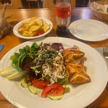 I stopped for lunch, where I got a warm goats cheese salad, with some french fries and a cold refreshing diet coke in a quintessential mountain hut/restaurant. Again I love these mountain restaurants as they are steeped in history and normally have all of their photos on the walls from the past. There is also just something the way in which the Swiss do lunch, very respectful, slow and appreciative of the occasion.